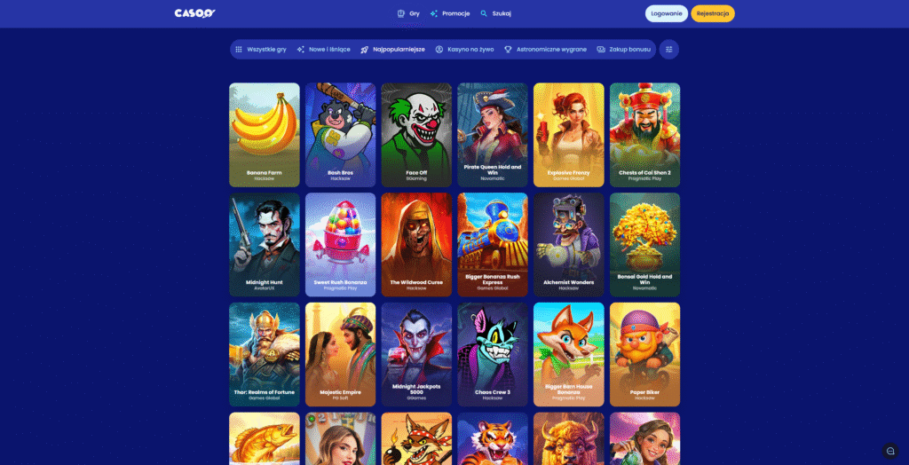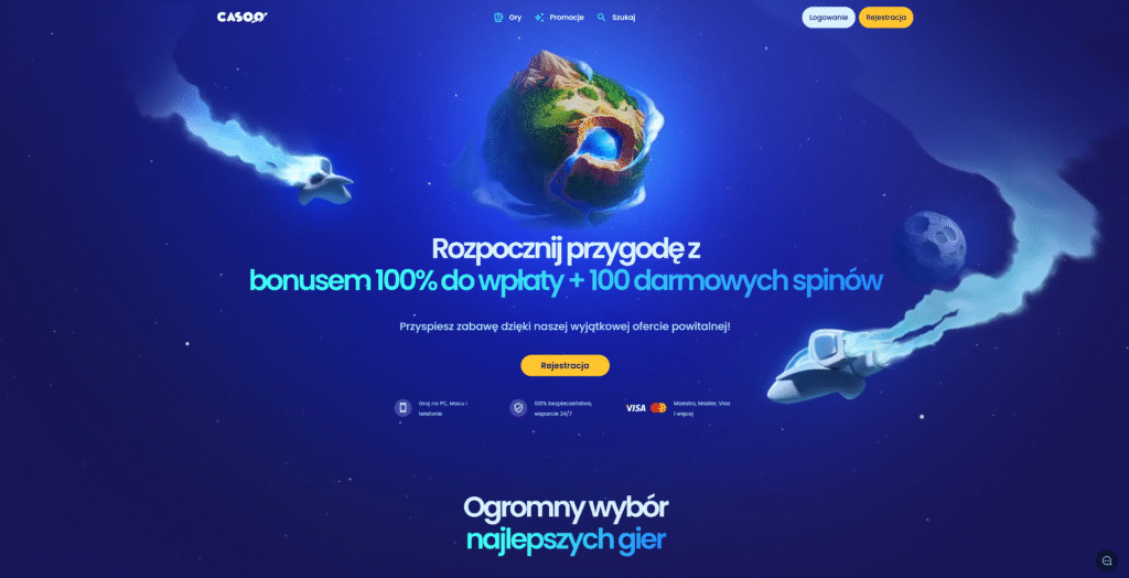 Casoo Casino to kolorowa, nowoczesna platforma, która oferuje dużą gamę gier, atrakcyjne bonusy i szybkie wypłaty w wielu przypadkach.