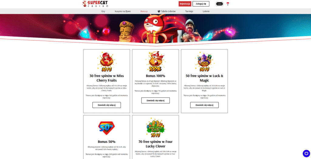 SuperCat Casino to dobra propozycja dla graczy, którzy szukają rozrywki z bonusem humoru, ciekawych promocji i szerokiej biblioteki gier w bezpiecznym środowisku.