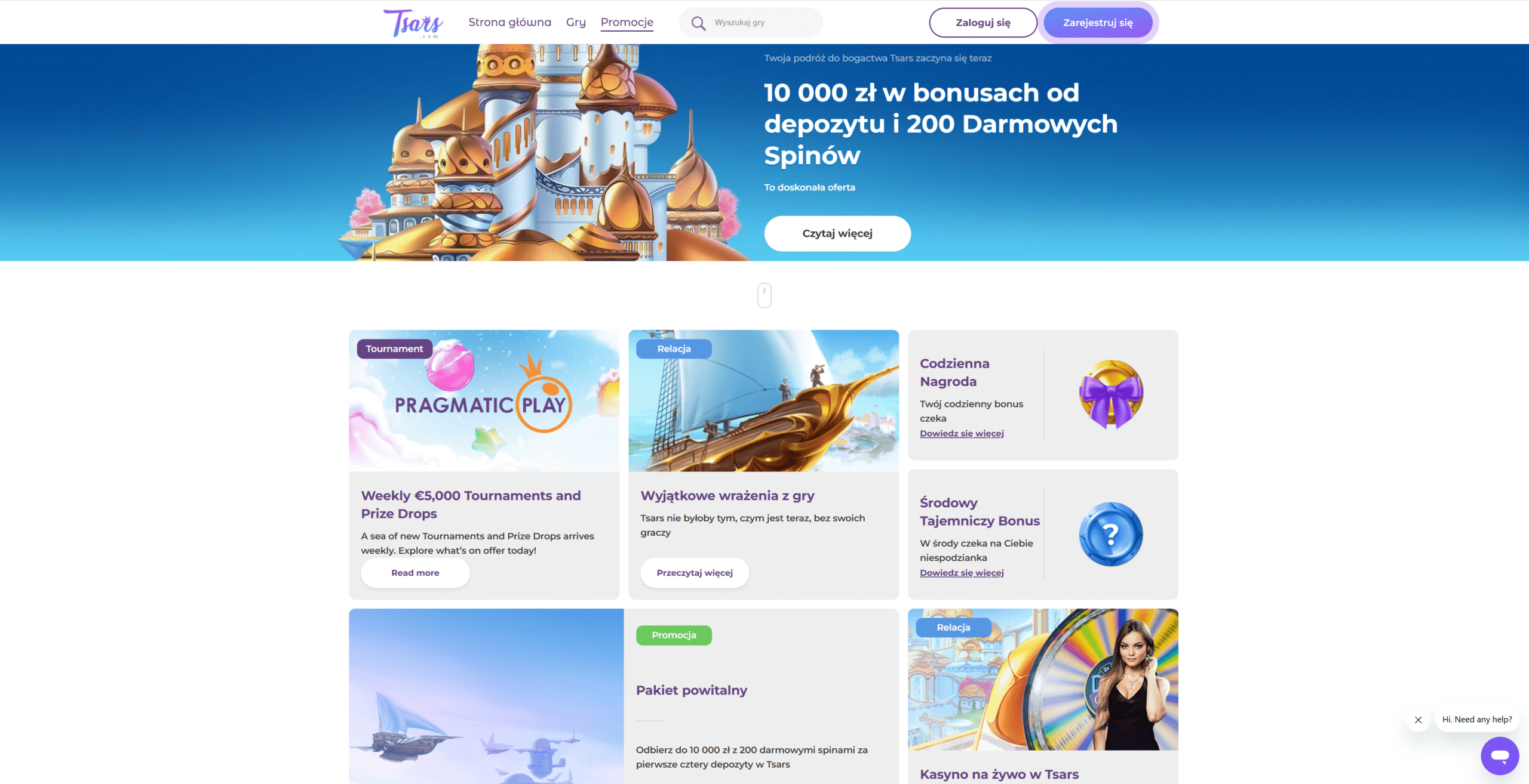 Tsars Casino to licencjonowany operator online działający od 2020 roku, z szeroką ofertą gier, szybkimi wypłatami i wsparciem kryptowalutowym. Sprawdź opinie, bonusy i wady.